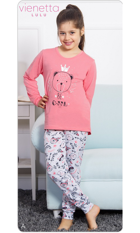 Пижама для девочки из хлопкового полотна. Брюки на поясе резинке, по низу манжет.   В размер, может немного большемерит. Качество изделия высокое. Фабричное производство.