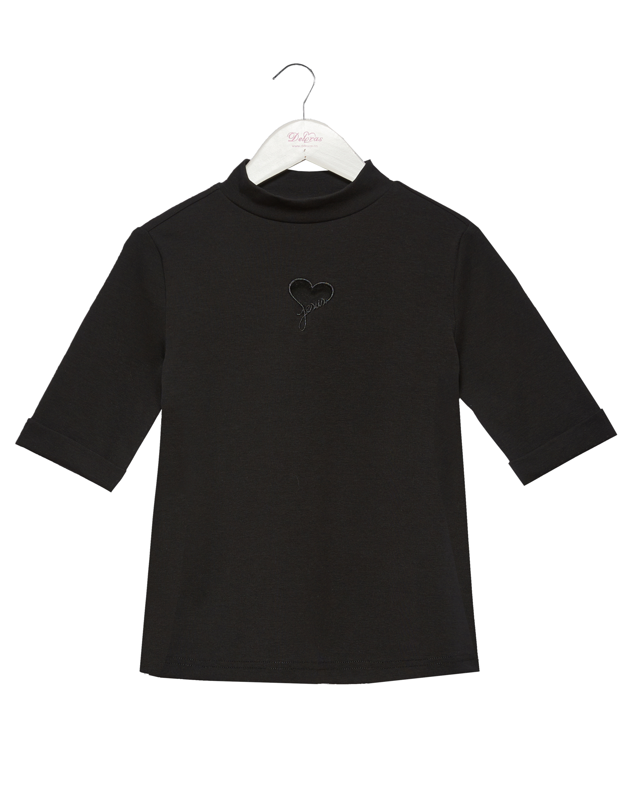 Водолазка с коротким рукавом из плотного приятного к телу трикотажа. Воротник стойка. По воротнику нашито металлическое сердечко.