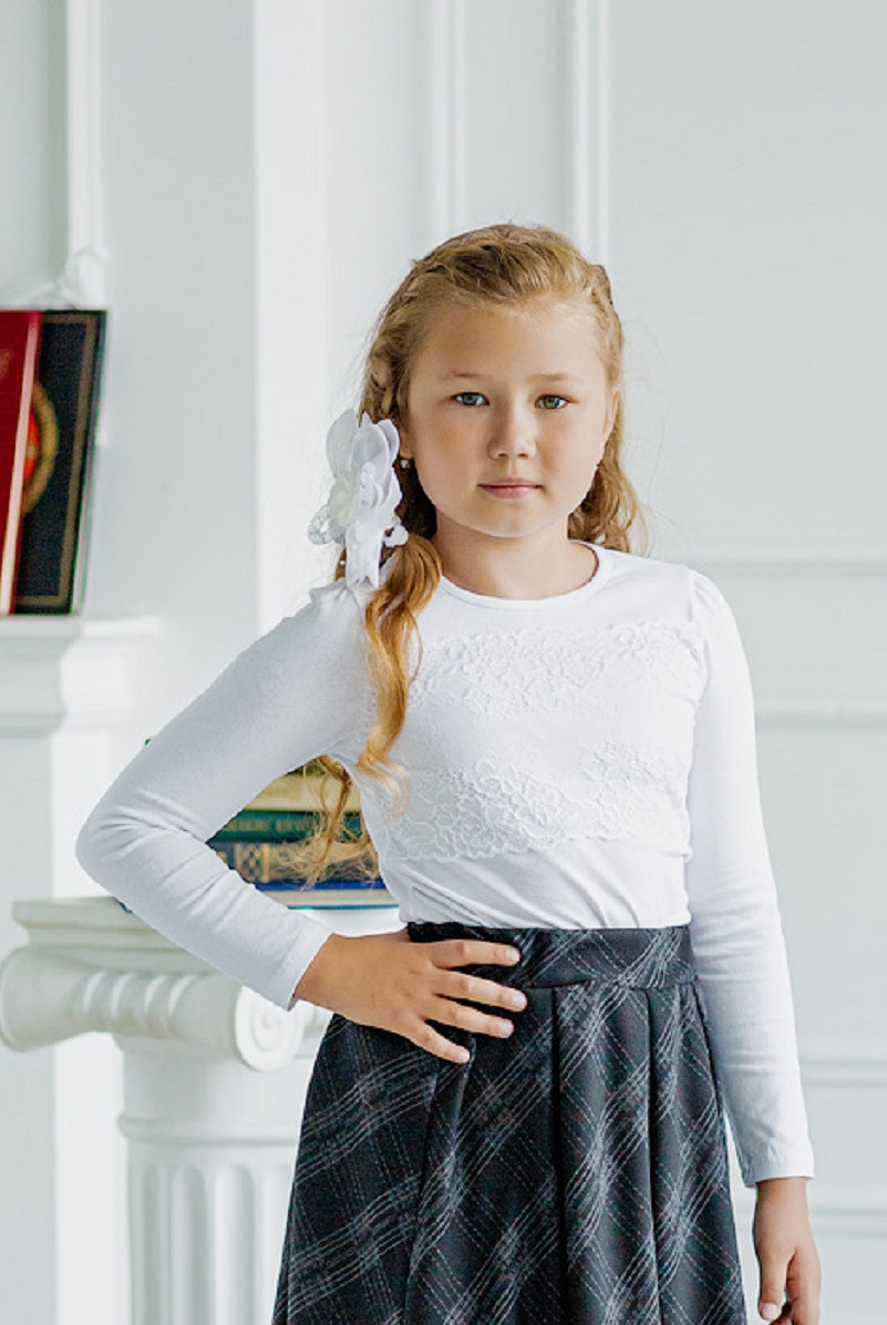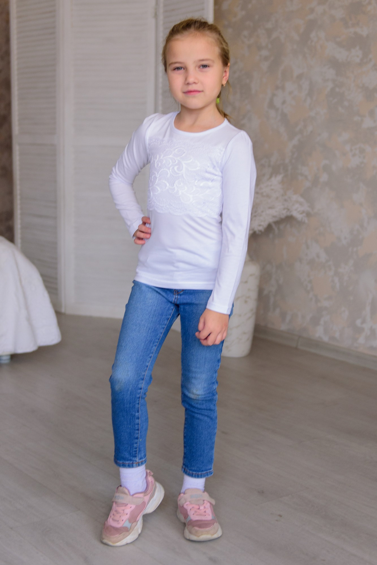 Футболка с длинным рукавом детская из кулирки с лайкрой Снежинка белый