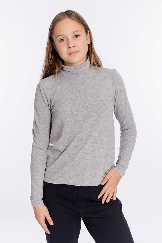 Водолазка с длинным рукавом и воротником-стойкой выполнена из кулирки с лайкрой. Комфортная и незаменимая вещь в базовом гардеробе.