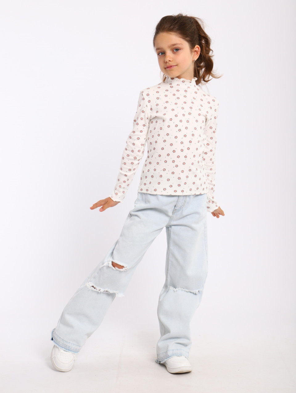 Водолазка для девочки выполнена из качественных материалов. Лонгслив на девочку имеет приталенный крой, что подчеркнет фигуру вашего ребенка. Джемпер с воланами на рукавах имеет стильный дизайн и разную расцветку. Детская кофта из лапши сочетается практически с любым стилем и не станет лишней в гардеробе ребенка. Детский пуловер с высоким горлом отлично подойдет как для школы, сада, так и для повседневных прогулок, праздника и отдыха. В нем будет комфортно круглый год, летом весной осенью или зимой. Состав: хлопок 95%, лайкра 5%. Хлопковый джемпер на девочку отлично дышит, и за счет небольшого добавления синтетики отлично отводит влагу и не деформируется при стирке.