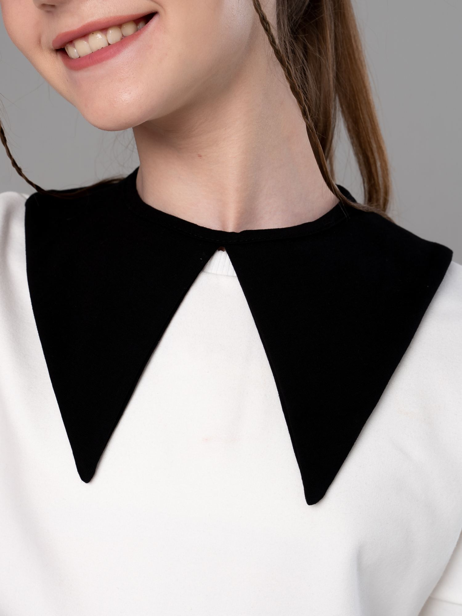 Элегантный съемный воротник из кулирки черного цвета для девочки. Им можно украсить любое платье или футболку. Изделие выполнено из трикотажа премиального качества - ПЕНЬЕ, с содержанием хлопка более 95%