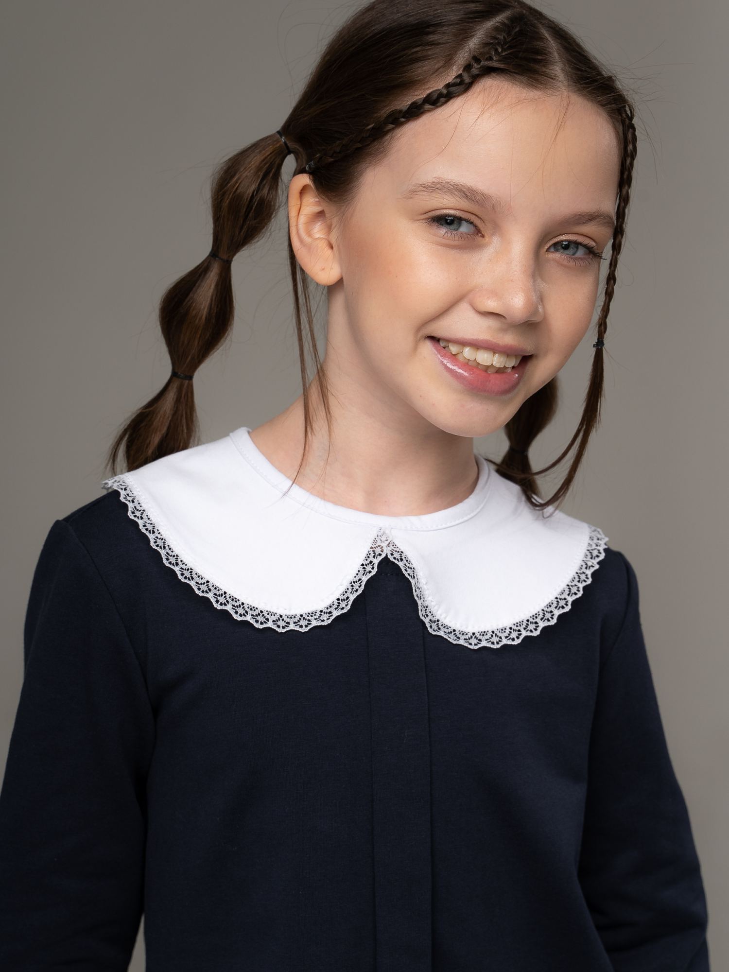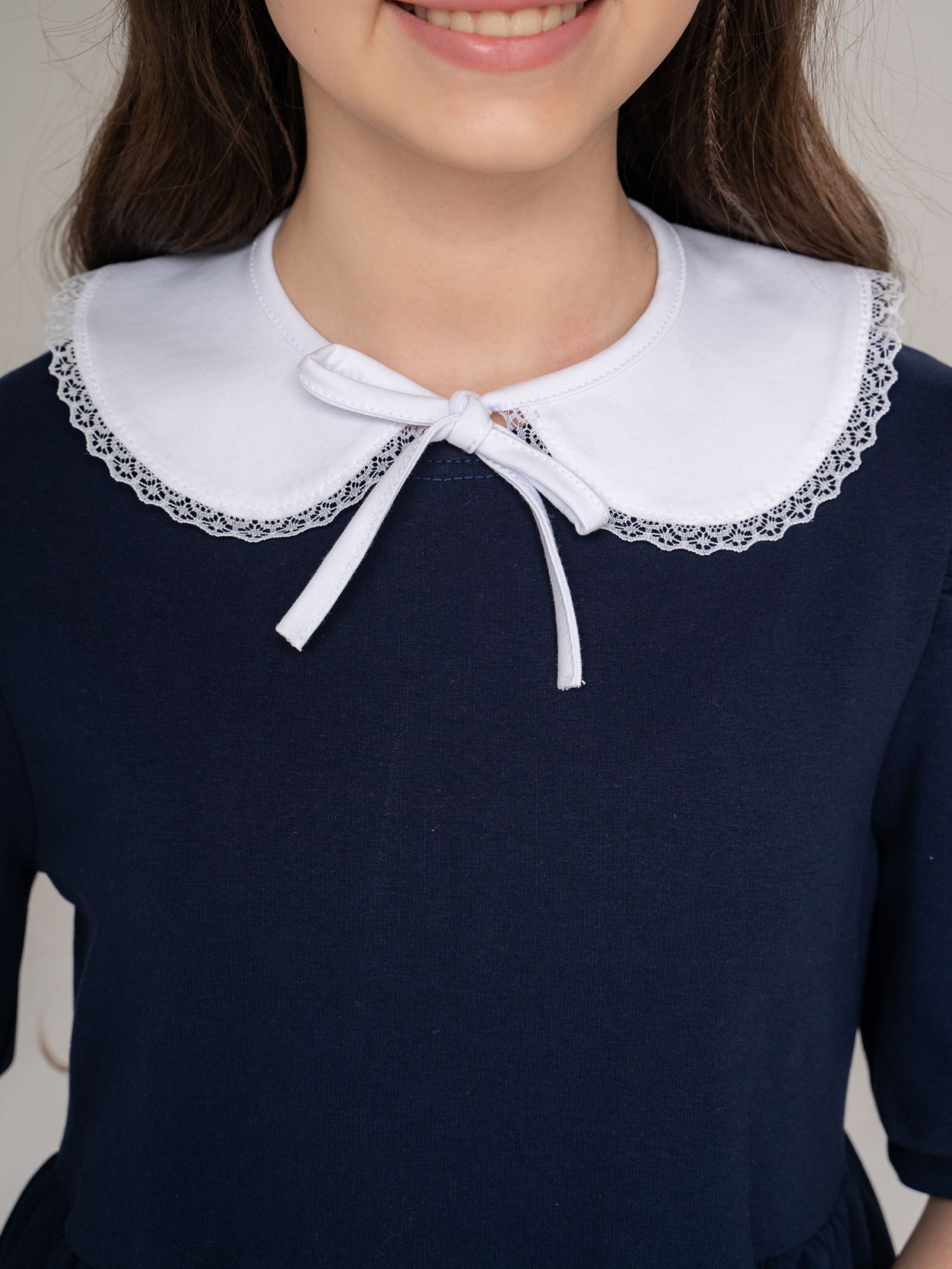 Элегантный съемный воротник из кулирки белого цвета для девочки. Им можно украсить любое платье или футболку. Завязывается на завязку-бант. Можно завязать как спереди так и сзади.Подходит для любого возраста. Изделие выполнено из трикотажа премиального качества - ПЕНЬЕ, с содержанием хлопка более 95%