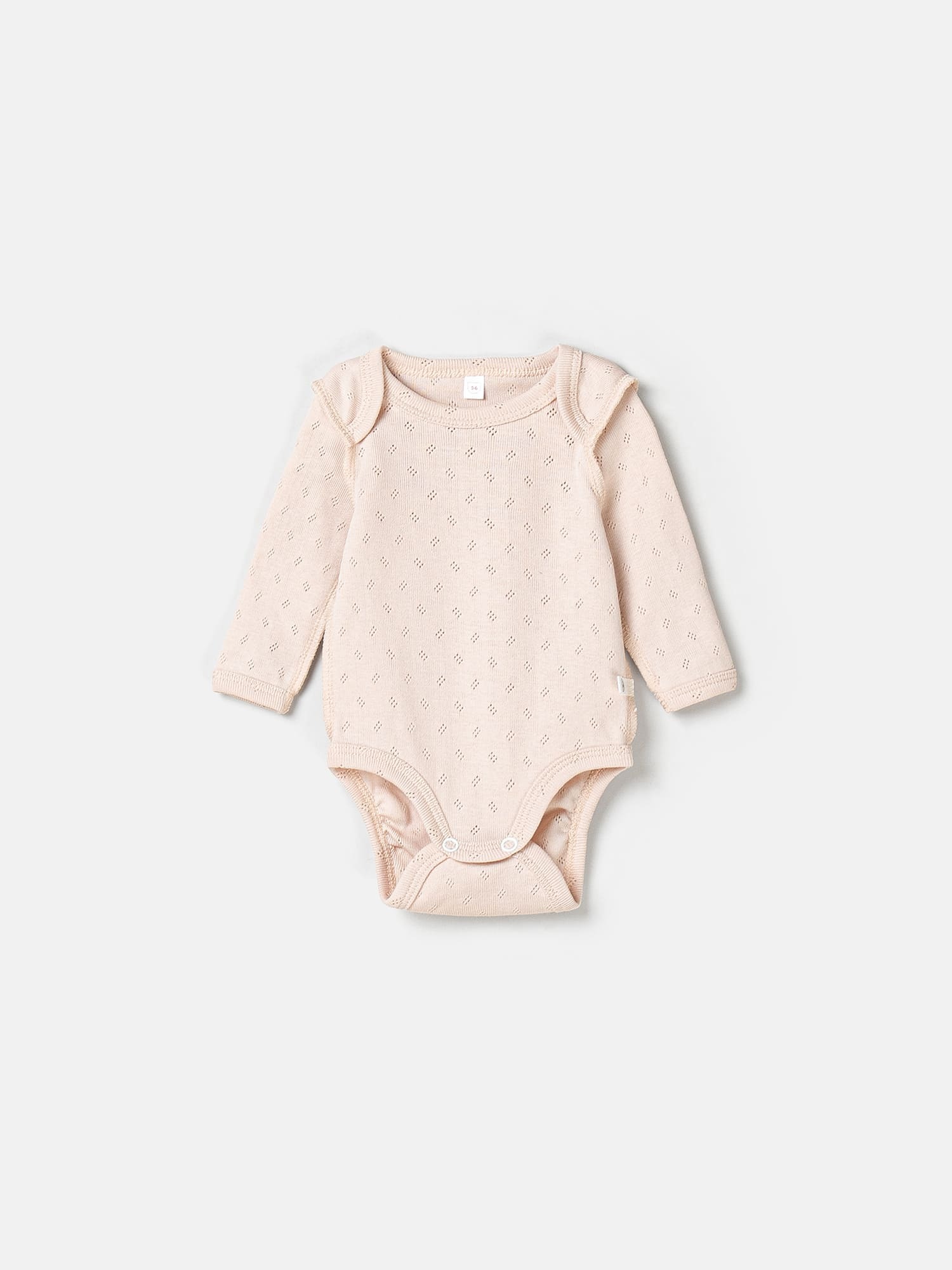Боди с длинным рукавом "Нюд" из ажурного хлопка 0+