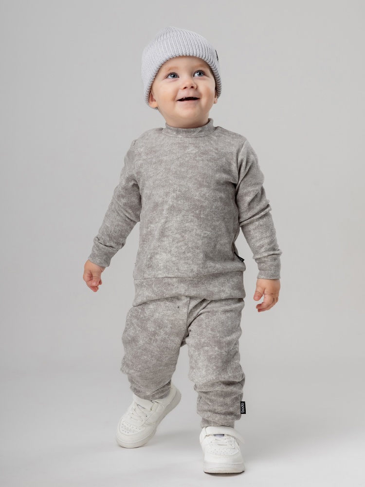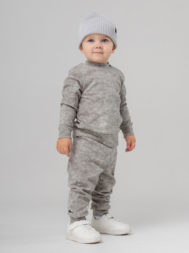 Материал рибана Состав 92% хлопок 8% лайкра Костюм для малышей. Свитшот, полуприлегающий покрой, рукава на манжетах, Брюки- джоггеры. Детали: пояс - эластичная резинка, низ изделия- манжеты. Состав: рибана 92% хлопок 8% лайкра