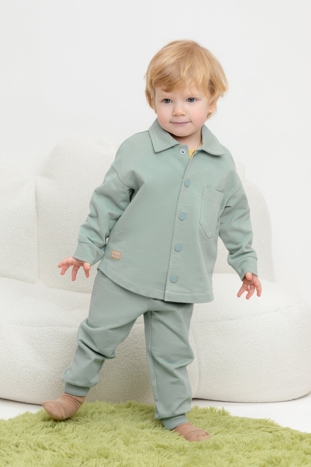 Трикотажные брюки для мальчика из петельчатого футера. Эластичный пояс на резинке регулируется по ширине с помощью шнурка, внизу эластичные манжеты.