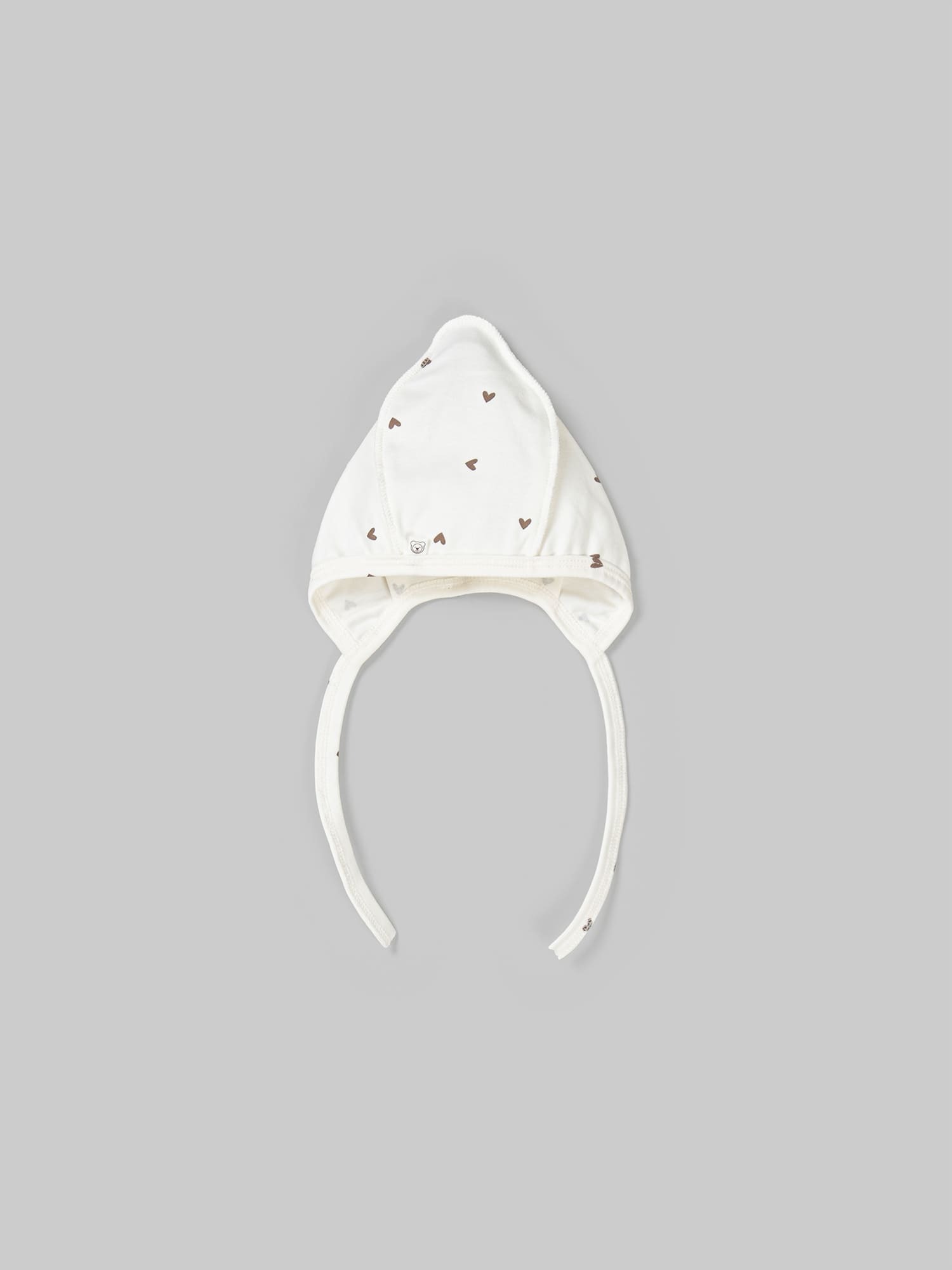 Удобный однослойный чепчик заостренной формы с сердечками.