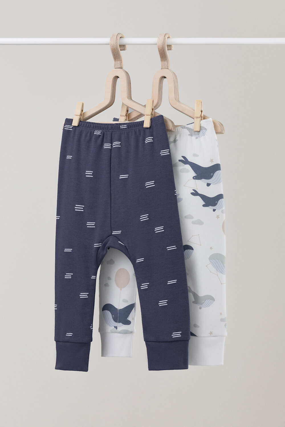 Брюки в упаковке 2 шт для новорождённых из мягкого, эластичного трикотажа, произведенного из натурального хлопка. Пояс на резинке. Оригинальная набивка выполнена из стойких, гипоаллергенных текстильных красителей. Все трикотажные полотна производятся в соответсвии с нормами Швейцарского сертификата ЭкоТекс.