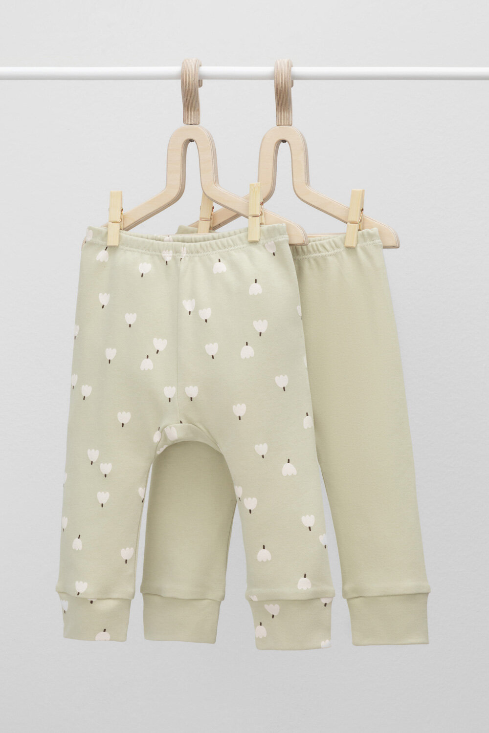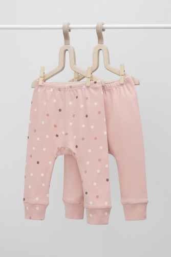 Брюки в упаковке 2 шт для новорождённых из мягкого, эластичного трикотажа, произведенного из натурального хлопка. Пояс на резинке. Оригинальная набивка выполнена из стойких, гипоаллергенных текстильных красителей. Все трикотажные полотна производятся в соответсвии с нормами Швейцарского сертификата ЭкоТекс.