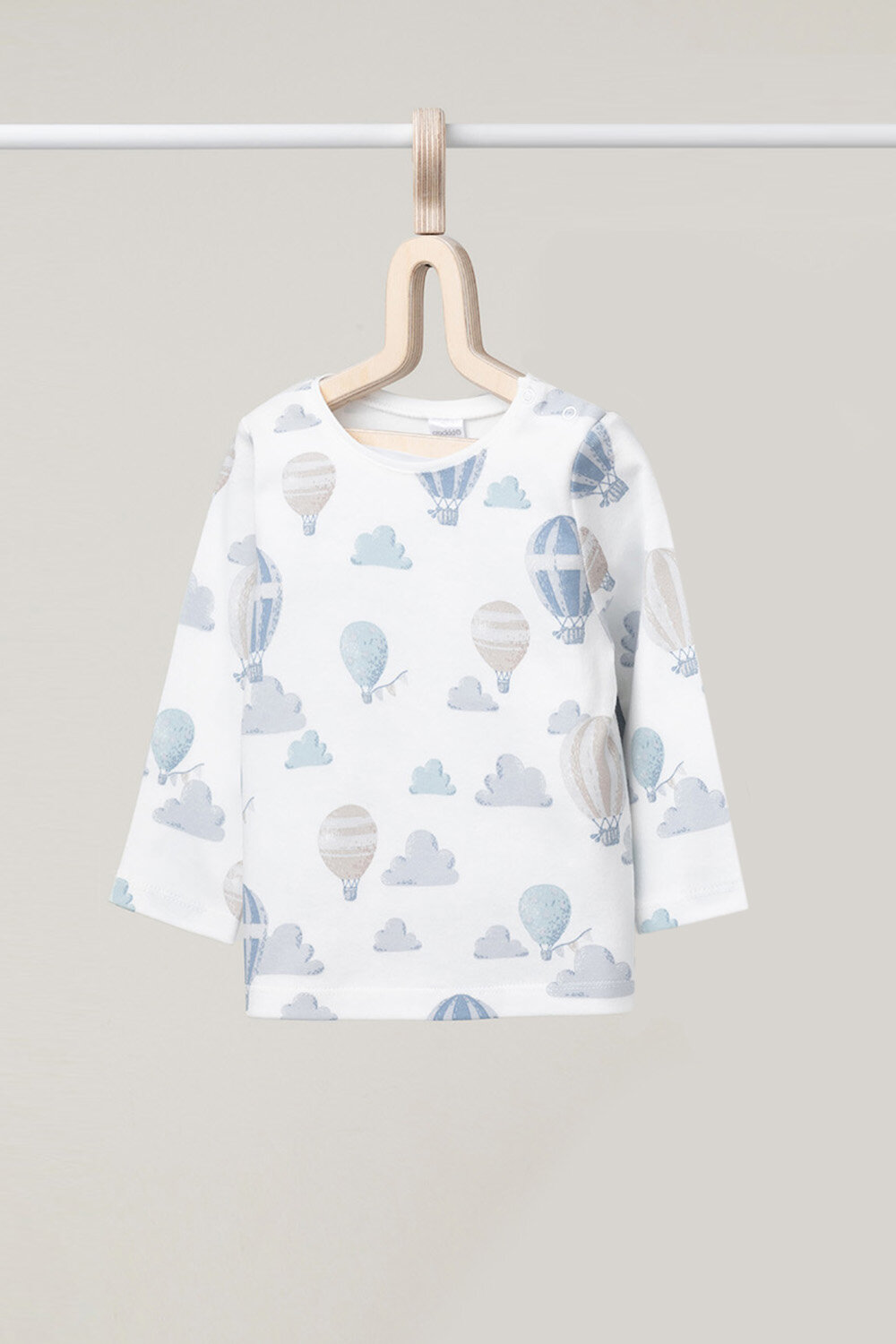 Джемпер для новорожденных из мягкого трикотажа, произведенного из натурального хлопка. Изделие застегивается на плече на кнопки. Оригинальная набивка выполнена из стойких, гипоаллергенных текстильных красителей. Все трикотажные полотна производятся в соответсвии с нормами Швейцарского сертификата ЭкоТекс.