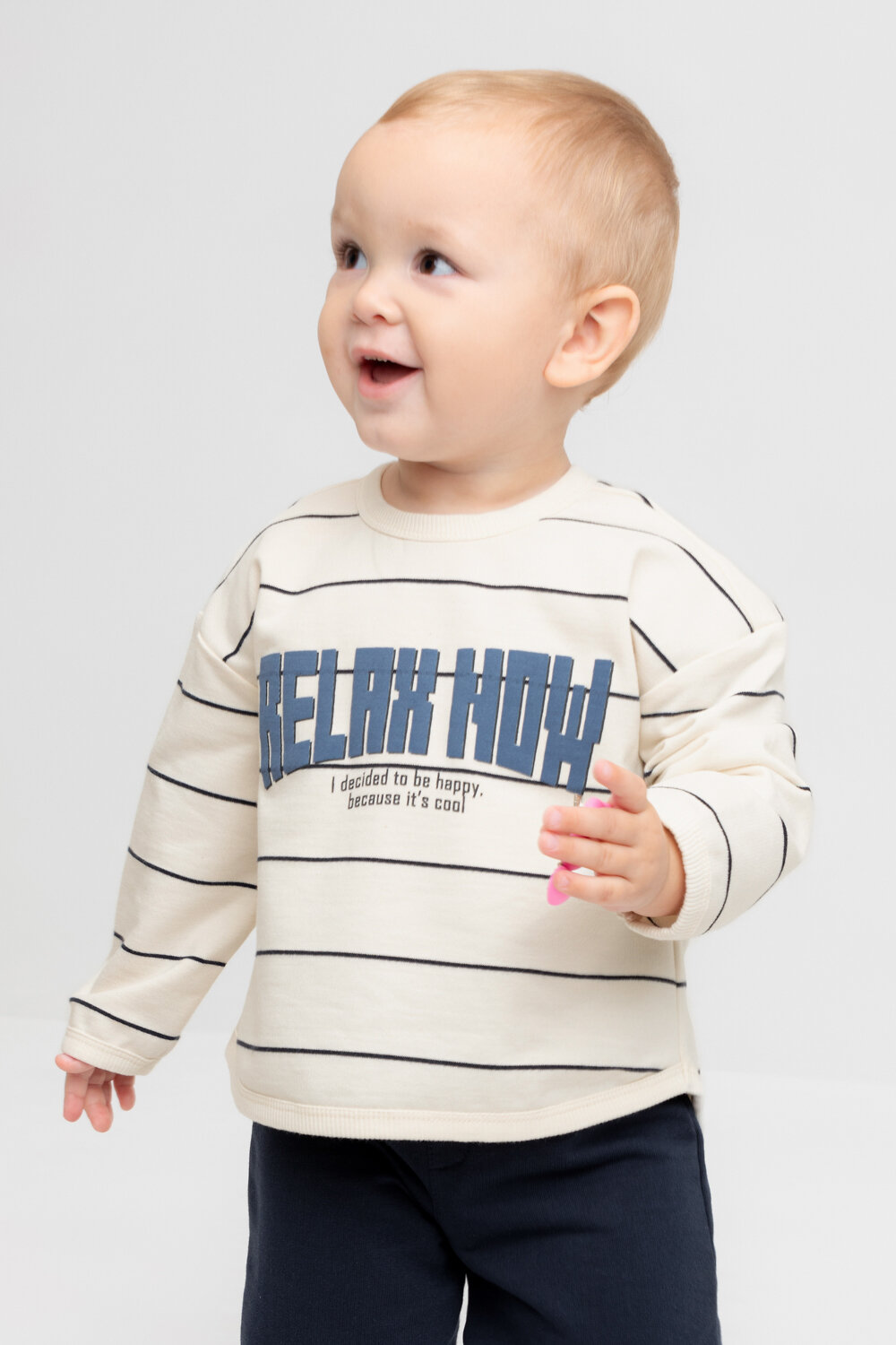 Свитшот для мальчика из высококачественного трикотажного полотна. Оригинальная набивка и принт выполнены из стойких текстильных гипоаллергенных красителей. Для удобства на спинке есть застежка на кнопки.