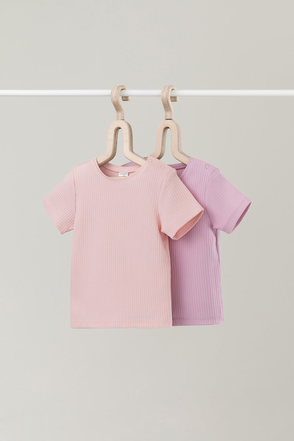 Футболки для девочки из высококачественного трикотажа, произведённого из натурального хлопка. В упаковке 2 штуки. Для удобства на плече застёжка на кнопки. Все трикотажные полотна производятся в соответствии с нормами Швейцарского сертификата ЭкоТекс.