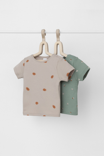 Футболки для мальчика в упаковке 2 шт из высококачественного трикотажного полотна. Оригинальная набивка выполнена из стойких гипоаллергенных текстильных красителей. Для удобства на плече застежка на кнопки.