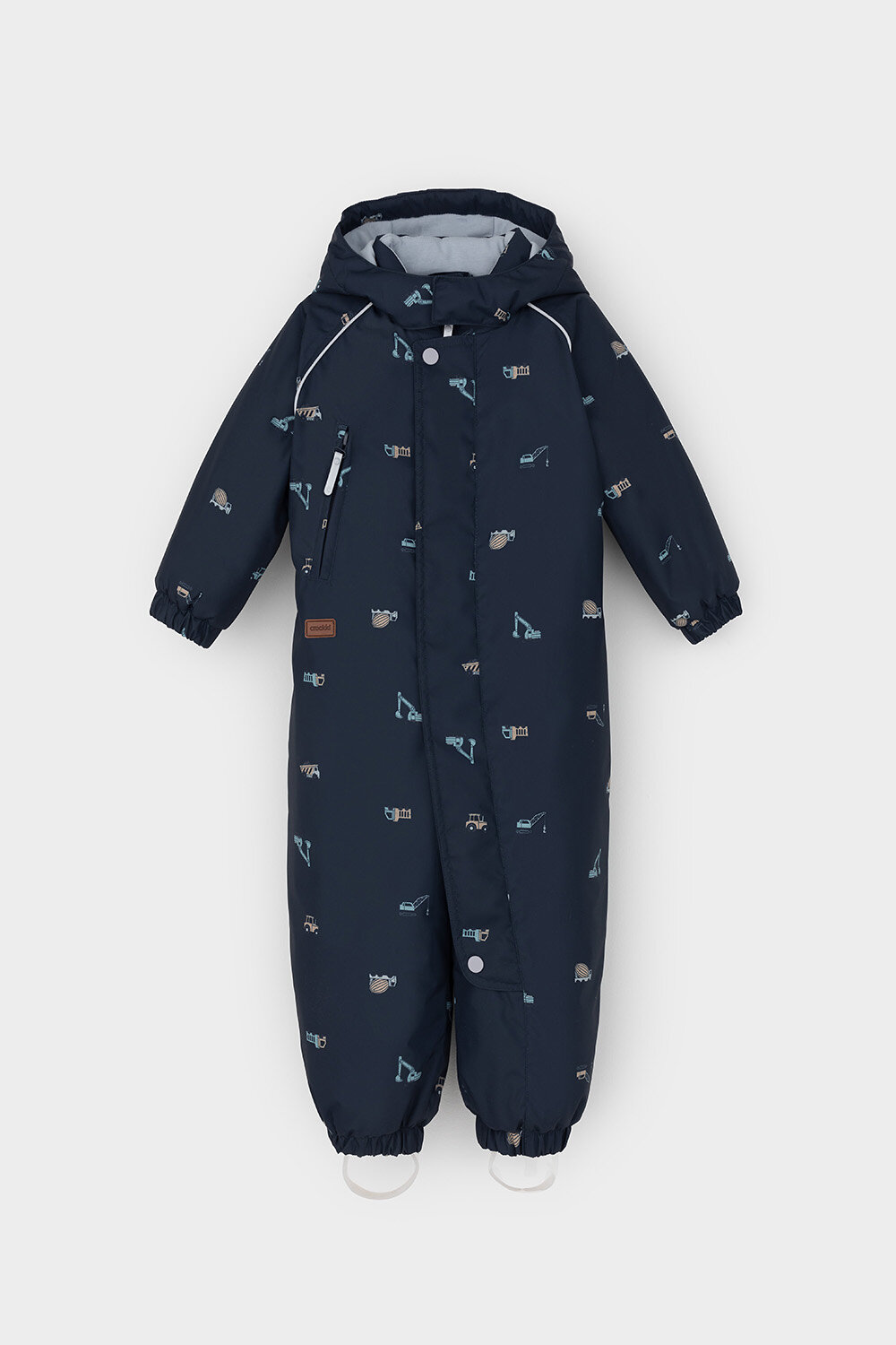 Демисезонный комбинезон ясельный с утеплителем SEE® 120 г/м2. Выполнен из мембранной ткани с дополнительной тефлоновой обработкой. Данный вид обработки предохраняет изделие от загрязнения и лучше отводит влагу. Подклад из 100% хлопка. Удлиненная молния для легкого одевания с защитой подбородка. Ветрозащитная планка фиксируется на липучках и кнопках. Утяжка на капюшоне с потайными стопперами. По низу рукавов и брючин, а также на спинке изделия предусмотрена эластичная резинка для лучшего прилегания. Для фиксации комбинезона используются съемные силиконовые штрипки. В размерах 74-80 функциональные отвороты на рукавах и брючинах. Во всех изделиях верхнего ассортимента для безопасности ребенка предусмотрены светоотражающие элементы.