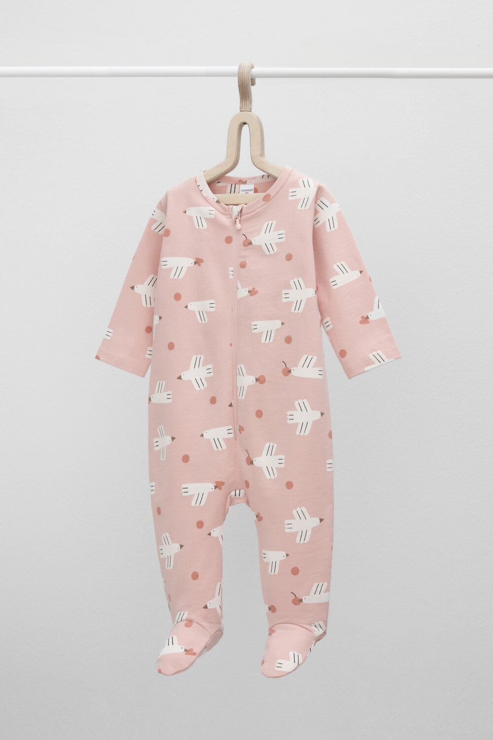 Комбинезон для новорождённых из тонкого трикотажа с начёсом, произведённого из натурального хлопка. Изделие застёгивается спереди на молнию. Оригинальная набивка выполнена из стойких, гипоаллергенных текстильных красителей. Все трикотажные полотна производятся в соответствии с нормами Швейцарского сертификата ЭкоТекс.