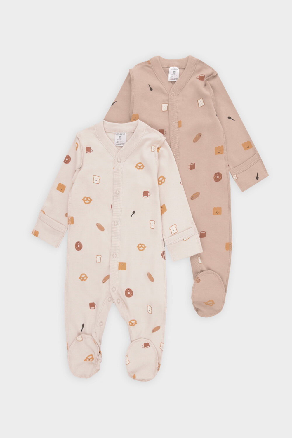 Комбинезоны в упаковке 2 шт для новорожденных из мягкого, эластичного трикотажа, произведенного из натурального хлопка. Изделие застегивается на кнопки. В размере 56 на рукавах предусмотрены антицарапки, швы выполнены наружу. Оригинальная набивка выполнена из стойких, гипоаллергенных текстильных красителей. Все трикотажные полотна производятся в соответсвии с нормами Швейцарского сертификата ЭкоТекс.