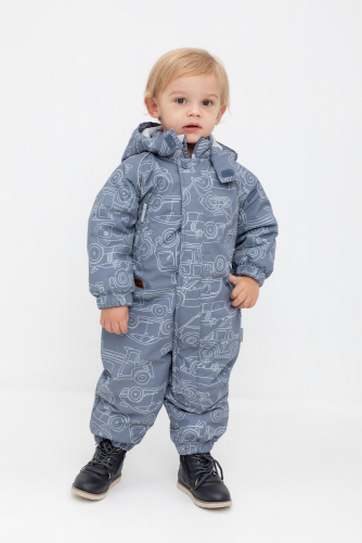 Ветровочный комбинезон ясельный из мембранной ткани с дополнительной тефлоновой обработкой. Данный вид обработки предохраняет изделие от загрязнения и лучше отводит влагу. Подклад из 100% хлопка. У изделия удлиненная молния для легкого одевания с защитой подбородка. Утяжка на капюшоне с потайными стопперами. По низу рукавов и брючин, а также на спинке изделия эластичная резинка для лучшего прилегания. Для фиксации комбинезона используются съемные силиконовые штрипки. В размерах 74-80 функциональные отвороты на рукавах и брючинах. Во всех изделиях верхнего ассортимента для безопасности ребенка предусмотрены светоотражающие элементы.