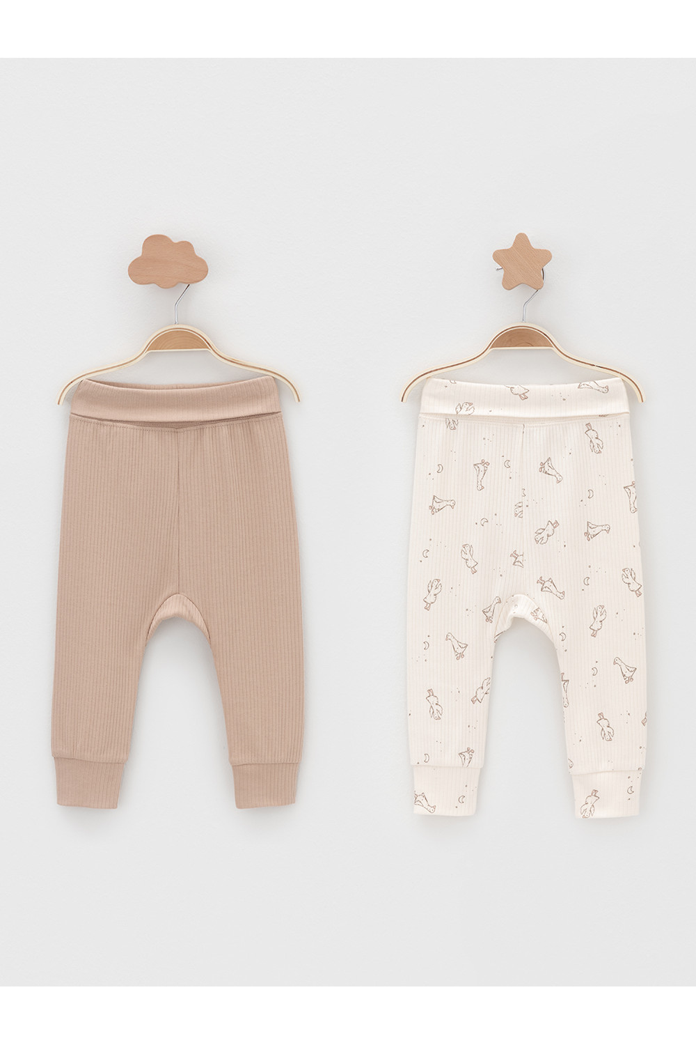 Брюки для новорождённых из мягкого эластичного трикотажа, произведённого из натурального хлопка. В упаковке 2 штуки. Пояс с отворотом на резинке. Все трикотажные полотна производятся в соответствии с нормами швейцарского сертификата ЭкоТекс.