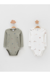 Боди для новорождённых из мягкого эластичного трикотажа, произведённого из натурального хлопка. В упаковке 2 штуки. Застёгиваются на кнопки по низу изделий. Все трикотажные полотна производятся в соответствии с нормами Швейцарского сертификата ЭкоТекс.