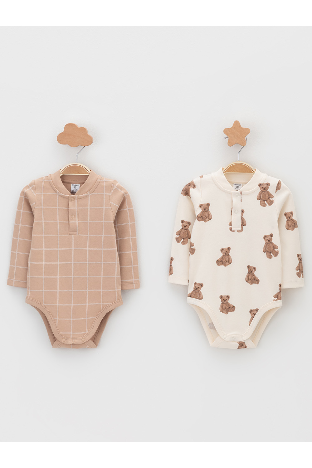 Боди для новорождённых из мягкого эластичного трикотажа, произведённого из натурального хлопка. В упаковке 2 штуки. Застёгиваются на кнопки спереди и по низу изделий. Оригинальная набивка выполнена из стойких гипоаллергенных текстильных красителей. Все трикотажные полотна производятся в соответствии с нормами швейцарского сертификата ЭкоТекс.