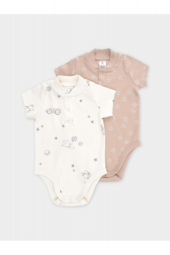 Боди для новорождённых из мягкого эластичного трикотажа, произведённого из натурального хлопка. В упаковке 2 штуки. Застёгиваются на кнопки на спинке и по низу изделий. Все трикотажные полотна производятся в соответствии с нормами швейцарского сертификата ЭкоТекс.