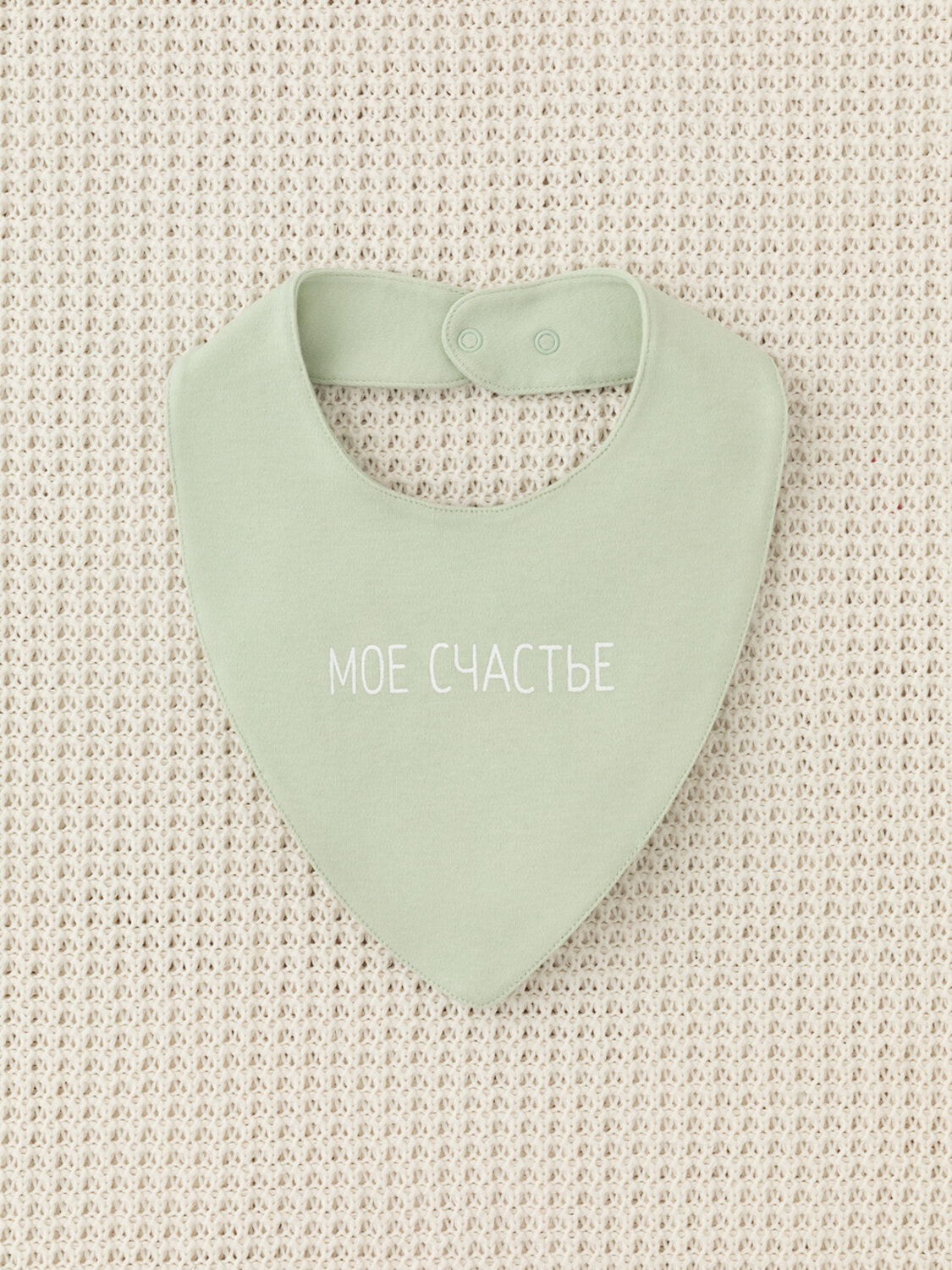 Нагрудник для новорождённых из мягкого эластичного трикотажа интерлок, произведённого из натурального хлопка. Застёгивается на кнопки. Украшен принтом. Все трикотажные полотна производятся в соответствии с нормами Швейцарского сертификата ЭкоТекс.