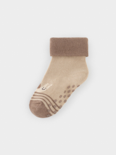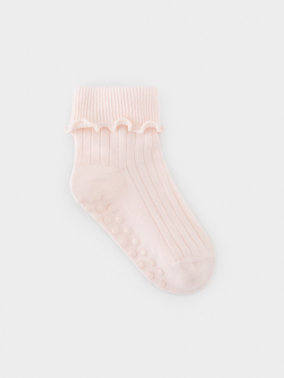 Носки детские однотонные с формованной пяткой и отворотом. На стопе противоскользящие стопперы. Изделие сохраняет форму и стойкий цвет после многочисленных стирок.