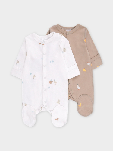Боди для новорождённых из мягкого эластичного трикотажа, произведённого из натурального хлопка. В упаковке 2 штуки. Застёгиваются на кнопки спереди и по низу изделий. Оригинальная набивка выполнена из стойких гипоаллергенных текстильных красителей. Все трикотажные полотна производятся в соответствии с нормами Швейцарского сертификата ЭкоТекс.