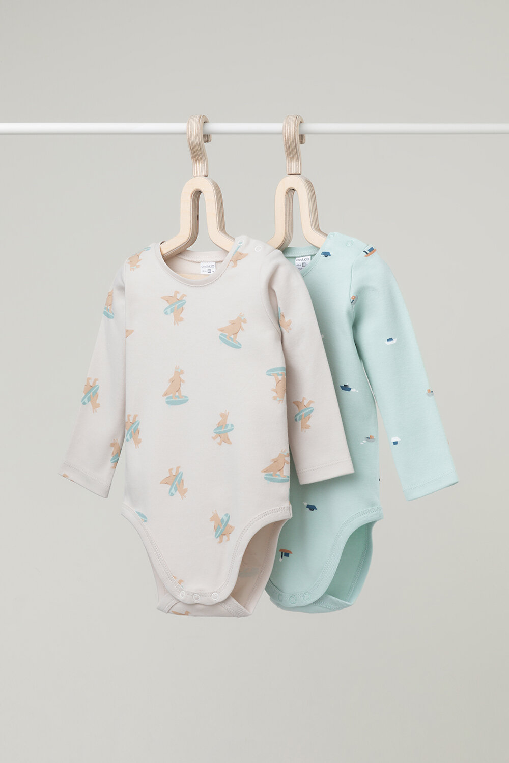 Боди для новорождённых из мягкого эластичного трикотажа, произведённого из натурального хлопка. В упаковке 2 штуки. Застёгиваются на кнопки на плече и по низу изделий. Оригинальная набивка выполнена из стойких гипоаллергенных текстильных красителей. Все трикотажные полотна производятся в соответствии с нормами Швейцарского сертификата ЭкоТекс.