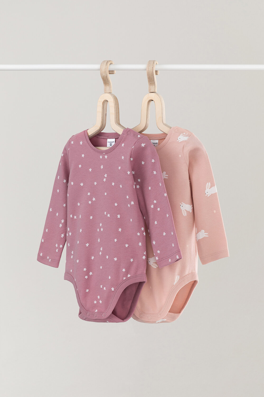 Боди в упаковке 2 шт для новорожденных из мягкого, эластичного трикотажа произведенного из натурального хлопка. Изделие застегивается на кнопки. Оригинальная набивка выполнена из стойких, гипоаллергенных, текстильных красителей. Все трикотажные полотна производятся в соответсвии с нормами Швейцарского сертификата ЭкоТекс.