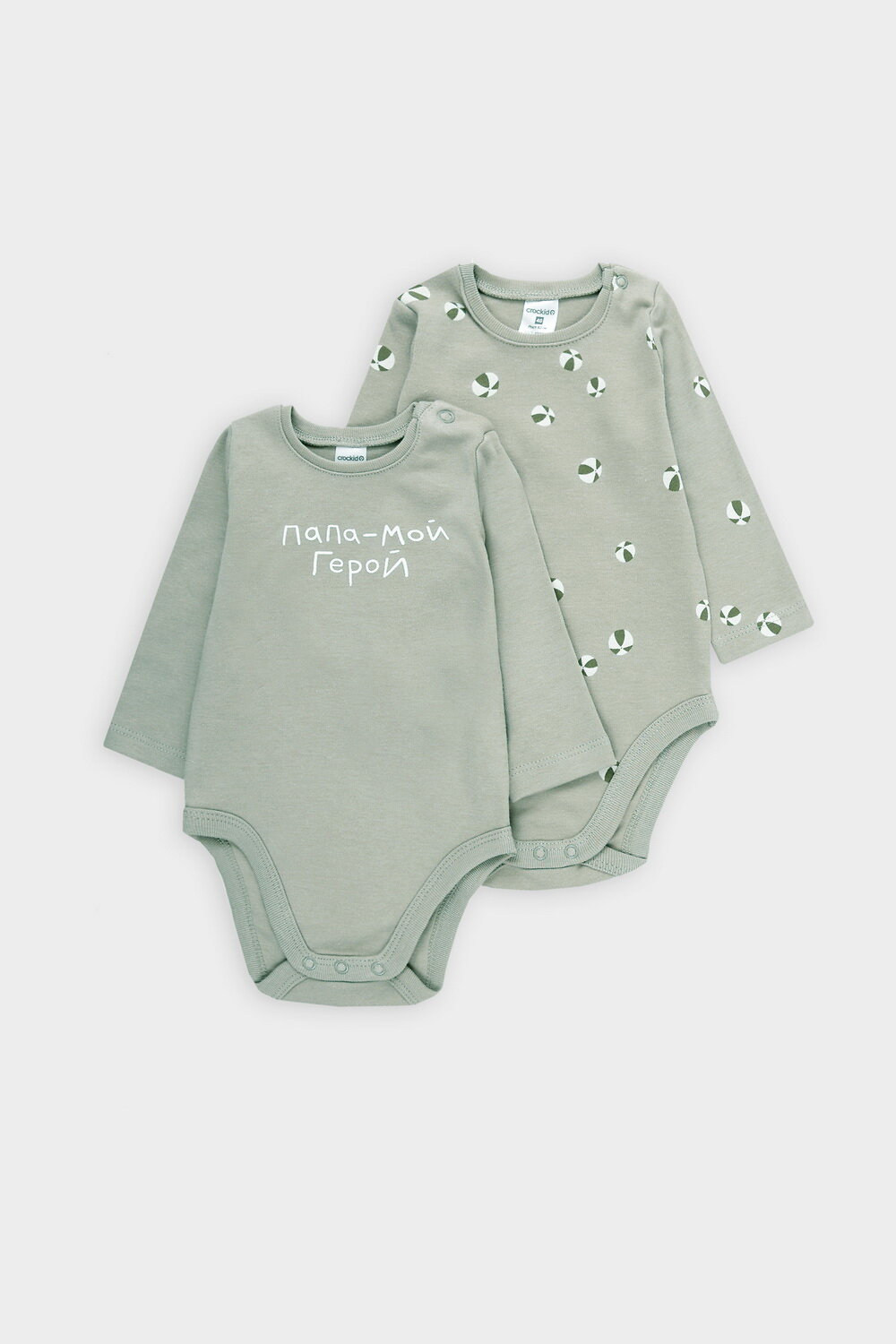 Боди в упаковке 2 шт для новорожденных из мягкого, эластичного трикотажа произведенного из натурального хлопка. Изделие застегивается на кнопки. Оригинальная набивка выполнена из стойких, гипоаллергенных, текстильных красителей. Все трикотажные полотна производятся в соответсвии с нормами Швейцарского сертификата ЭкоТекс.
