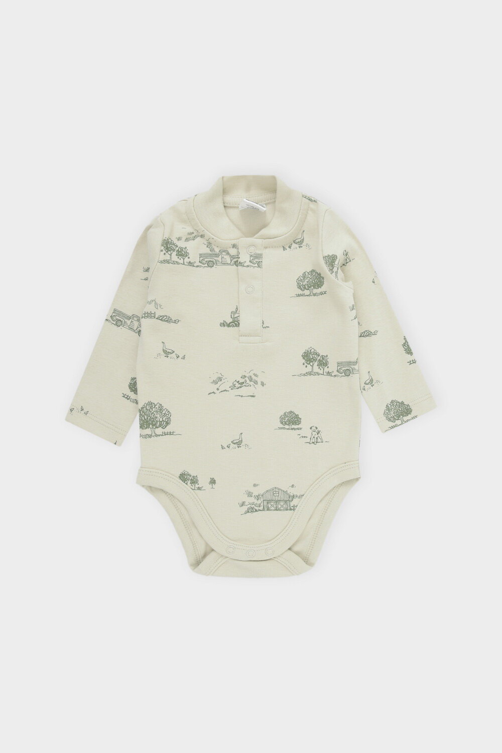 Боди из рибаны с воротником для новорожденных из мягкого, эластичного трикотажа произведенного из натурального хлопка. Застежка на кнопки на спинке. Изделие застегивается на кнопки в области паха. Все трикотажные полотна производятся в соответсвии с нормами Швейцарского сертификата ЭкоТекс.