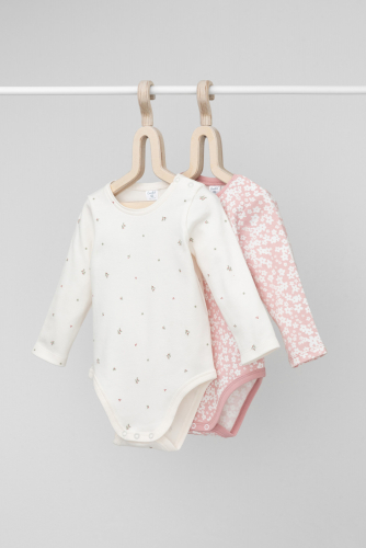 Боди в упаковке 2 шт для новорожденных из мягкого, эластичного трикотажа произведенного из натурального хлопка. Изделие застегивается на кнопки. Оригинальная набивка выполнена из стойких, гипоаллергенных, текстильных красителей. Все трикотажные полотна производятся в соответсвии с нормами Швейцарского сертификата ЭкоТекс.