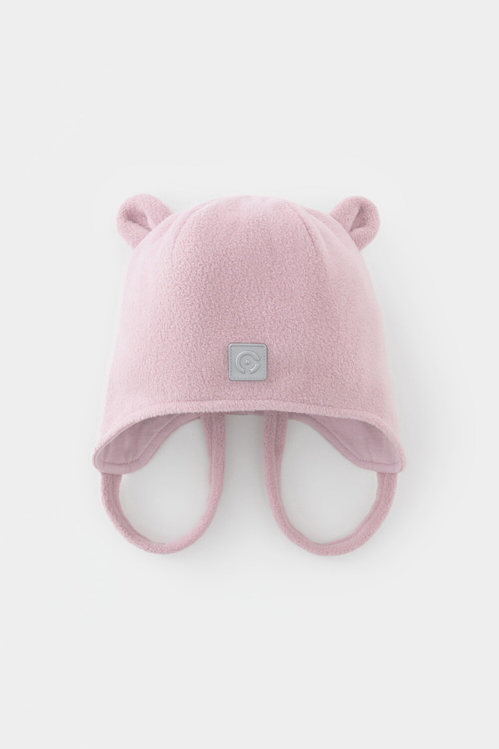 Флисовая шапка на завязках с мягким подкладом из натурального хлопка. Сверху украшена декоративными ушками из флиса. Спереди прикреплён светоотражатель, который обеспечивает дополнительную безопасность в тёмное время суток. Шапка сохраняет цвет и форму после многократных стирок.