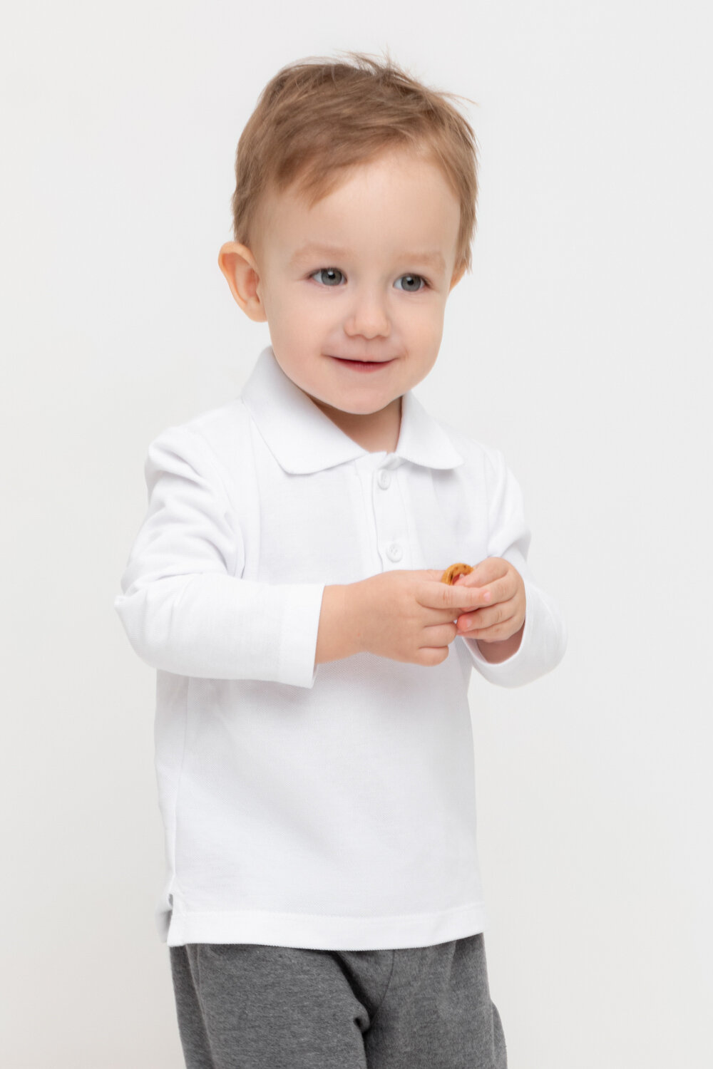 Поло для мальчика из трикотажного полотна пике. Вязаный воротник. Удобная застежка спереди.