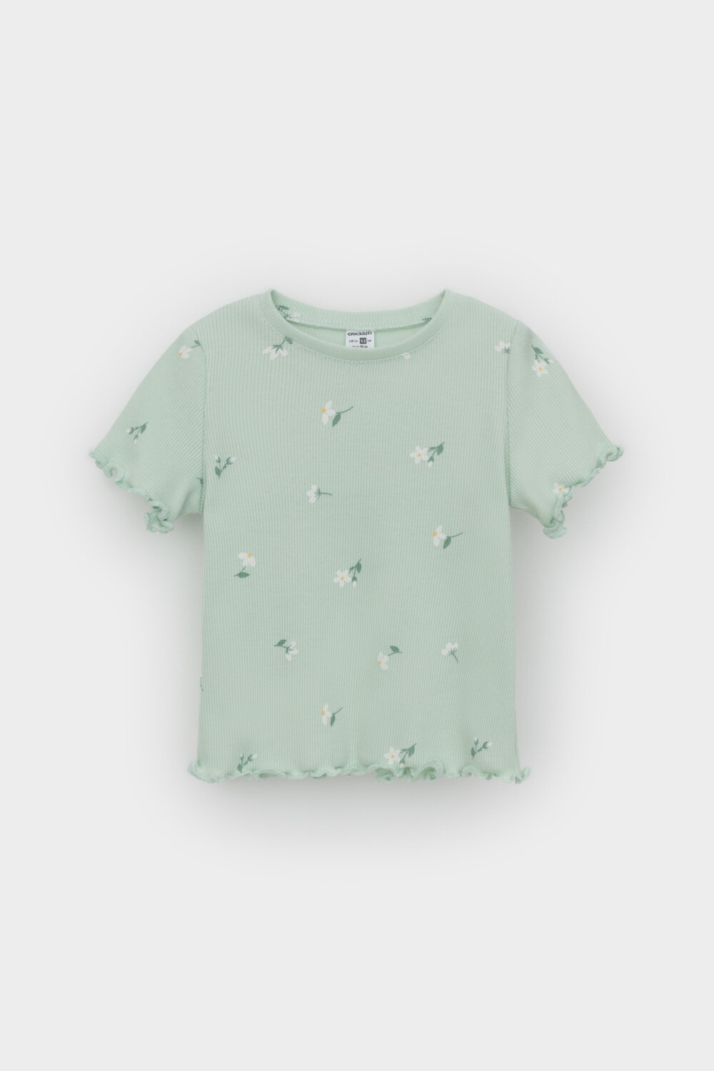 Футболка для девочки из эластичного трикотажа в рубчик. Оригинальная набивка выполнена из стойких текстильных красителей.