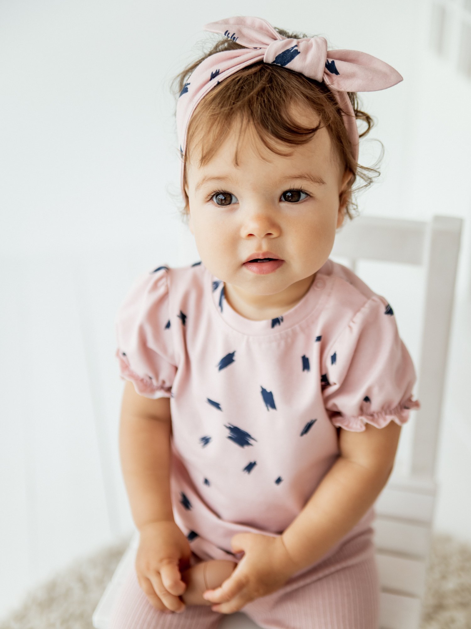 Футболка из хлопкового трикотажа с рукавами-фонариками – удобная и нарядная модель для малышей на каждый день.