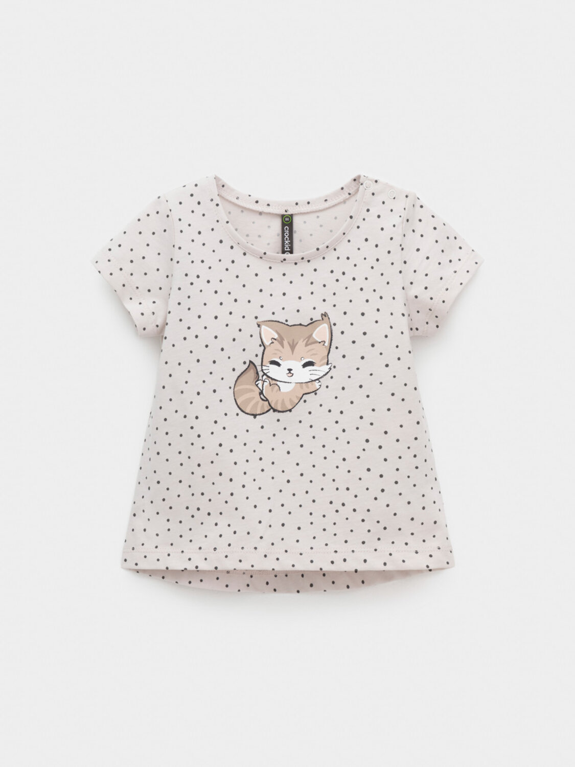 Футболка для девочки из гладкого трикотажа, произведённого из высококачественного натурального хлопка. Застёгивается на плече кнопки. Оригинальный принт выполнен из стойких текстильных гипоаллергенных красителей. Изделие сохраняет цвет и форму после многократных стирок. Все трикотажные полотна производятся в соответствии с нормами швейцарского сертификата ЭкоТекс.