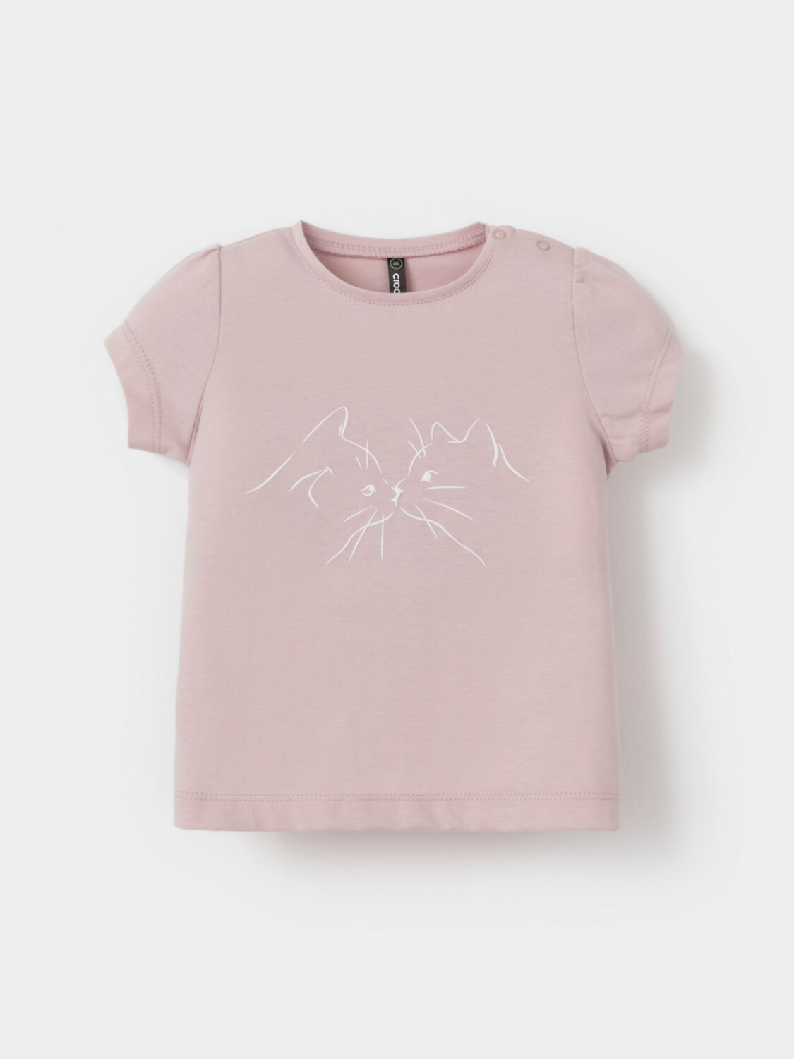 Футболка для девочки из гладкого трикотажа, произведённого из высококачественного натурального хлопка. На плече застёгивается на кнопки. Оригинальный принт выполнен из стойких текстильных гипоаллергенных красителей. Изделие сохраняет цвет и форму после многократных стирок. Все трикотажные полотна производятся в соответствии с нормами швейцарского сертификата ЭкоТекс.