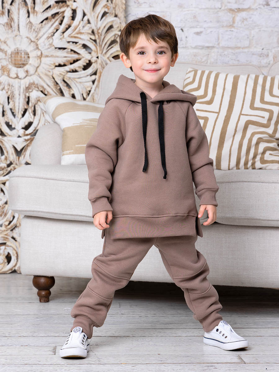 Костюм Тим для мальчика, предназначен для носки в прохладных помещениях и прогулки на улице, выполнен из плотного футера с начёсом. Толстовка на поясе, с капюшоном на шнурке, рукава-реглан на манжетах. Разрезы в боковых швах по нижней части толстовки придают модели особую оригинальность. Штанишки на манжетах, пояс на резинке, декоративная отстрочка в области колен. В таком костюме ребёнок будет чувствовать себя комфортно, уютно и всегда будет в центре внимания! Цвет: мокко;морская волна;чеддер; Материал: футер 3-х нитка с начесом;футер 3-х нитка с начесом; Состав: 70% хлопок, 30% ПЭ.