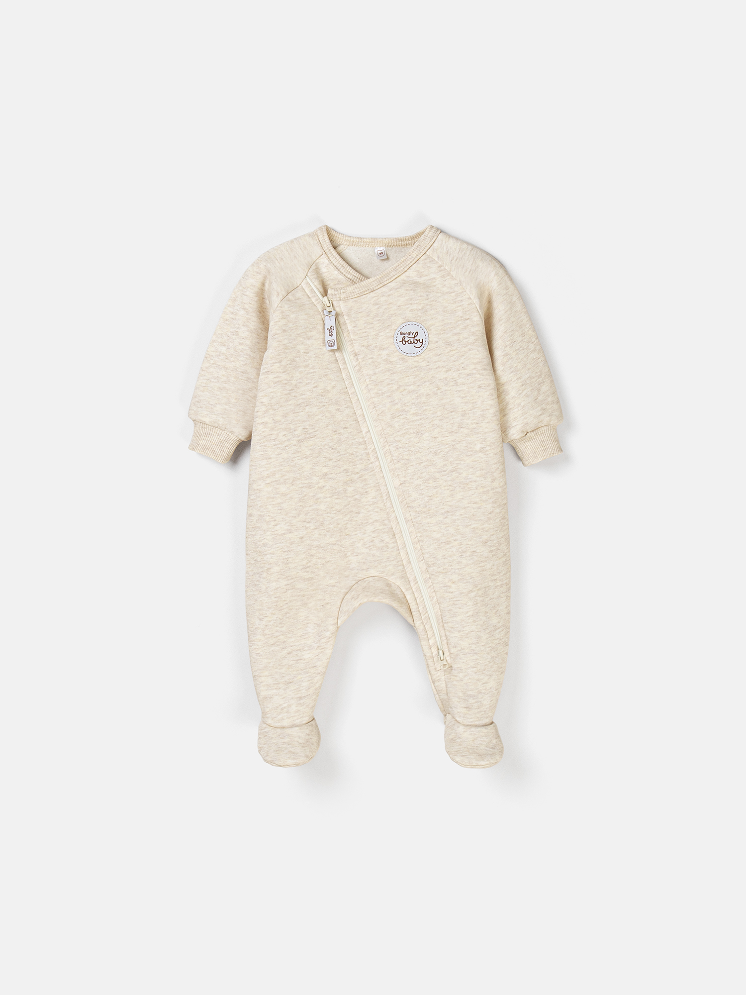 Асимметричная молния и двойной бегунок облегчают процесс переодевания ребенка и смену подгузника. Двойной слой ткани на груди дополнительно защищает от холода.