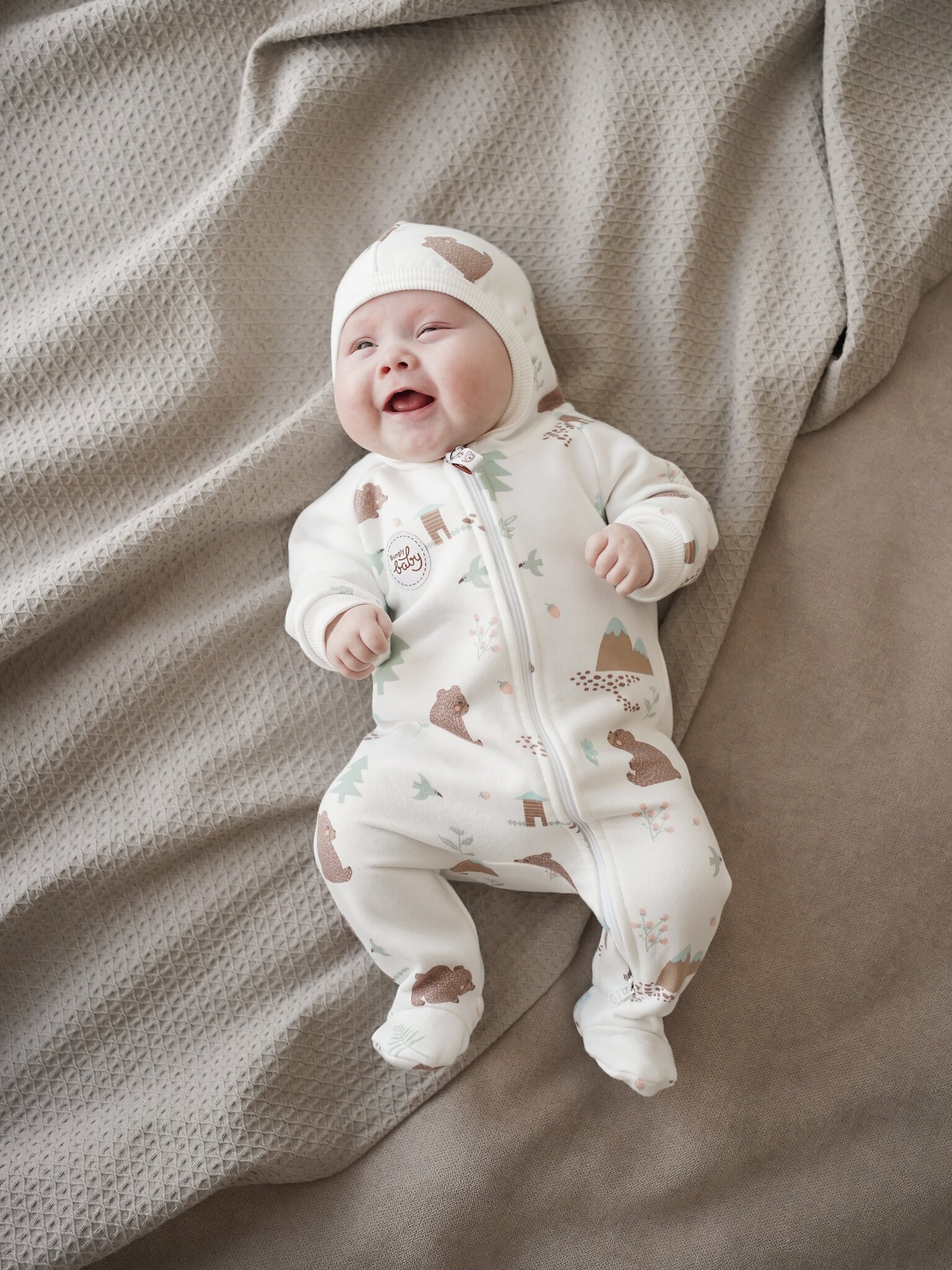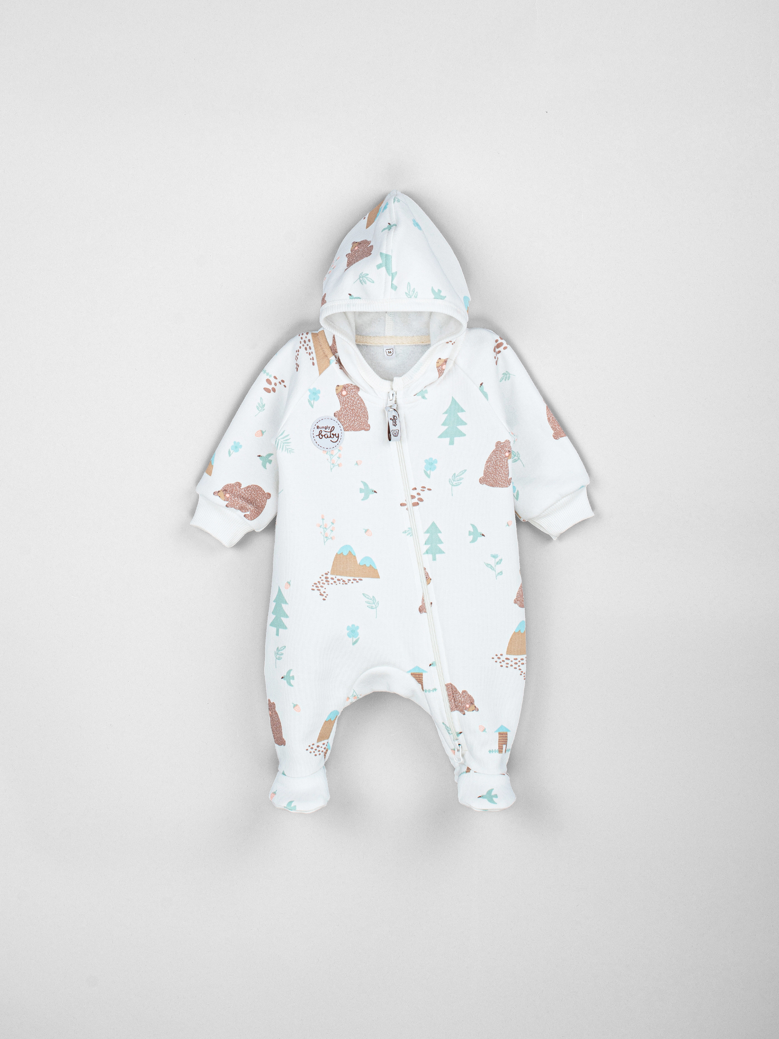 Центральная молния с двумя бегунками и фирменным пуллером позволяет быстро и удобно переодеть малыша – удобно, если нужно срочно сменить одежду после прогулки или перед сном.
