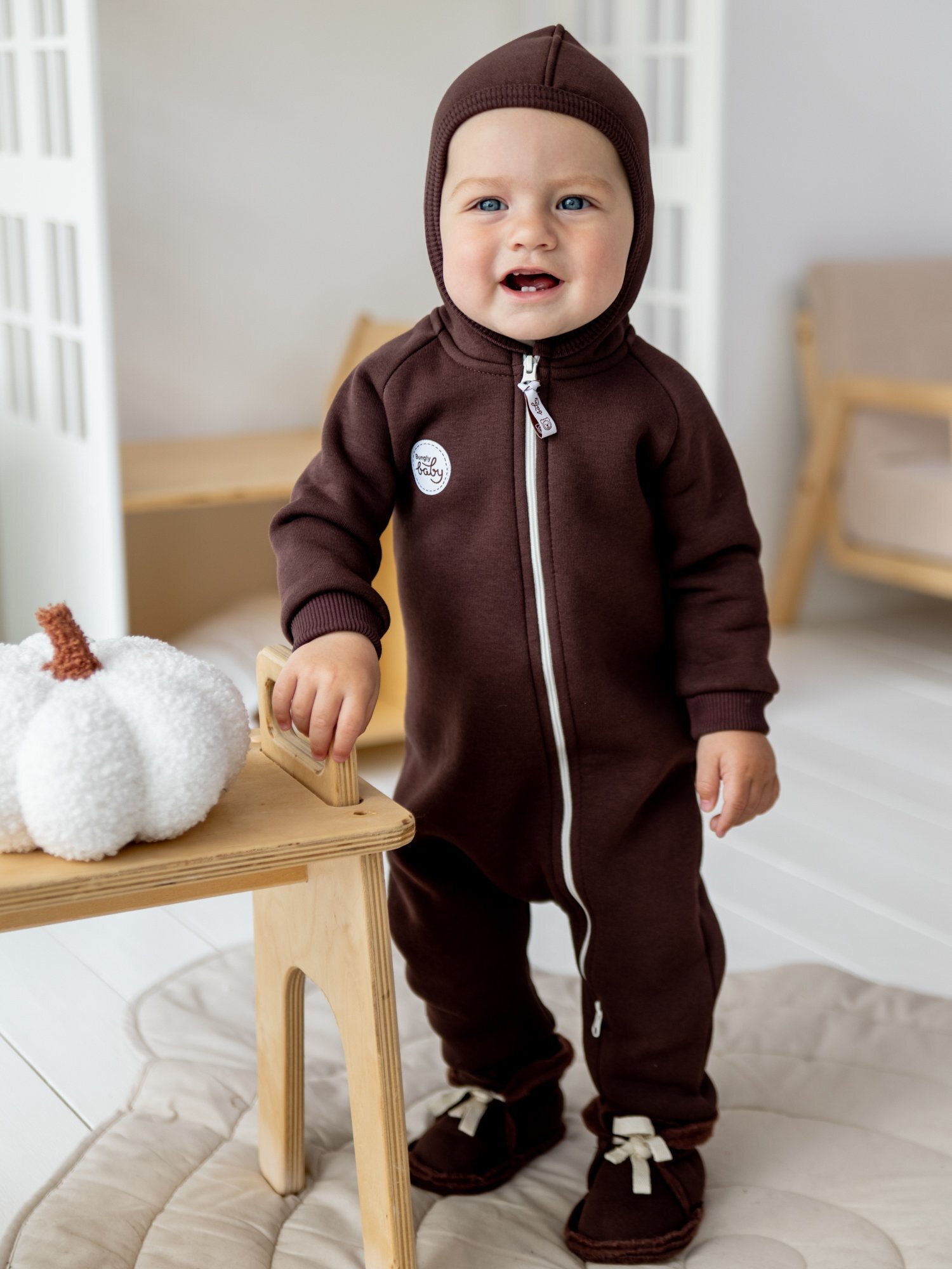 Комбинезон с капюшоном из футера с начёсом – тёплый и удобный вариант для малышей в холодное время года.