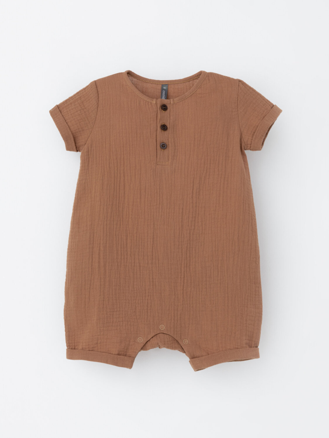 Легкий песочник для мальчика из мягкого хлопокового муслина с застежкой на пуговицы. Изделие сохраняет цвет, форму и фактуру жатости после многократных стирок.