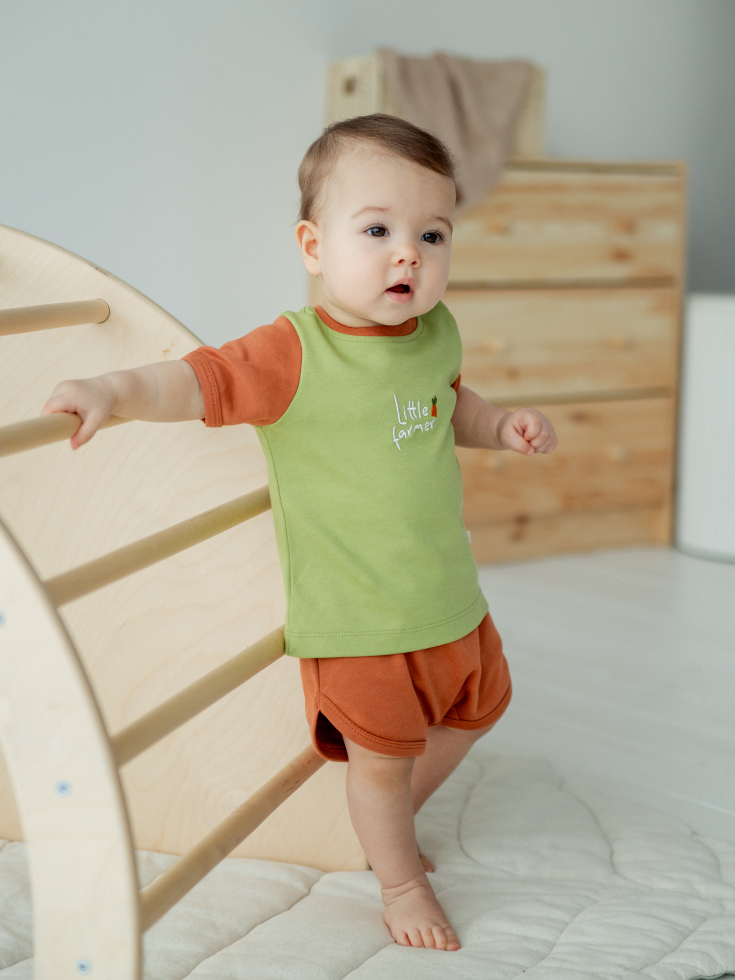 Комфортный комплект из футболки и шортиков для малышей.