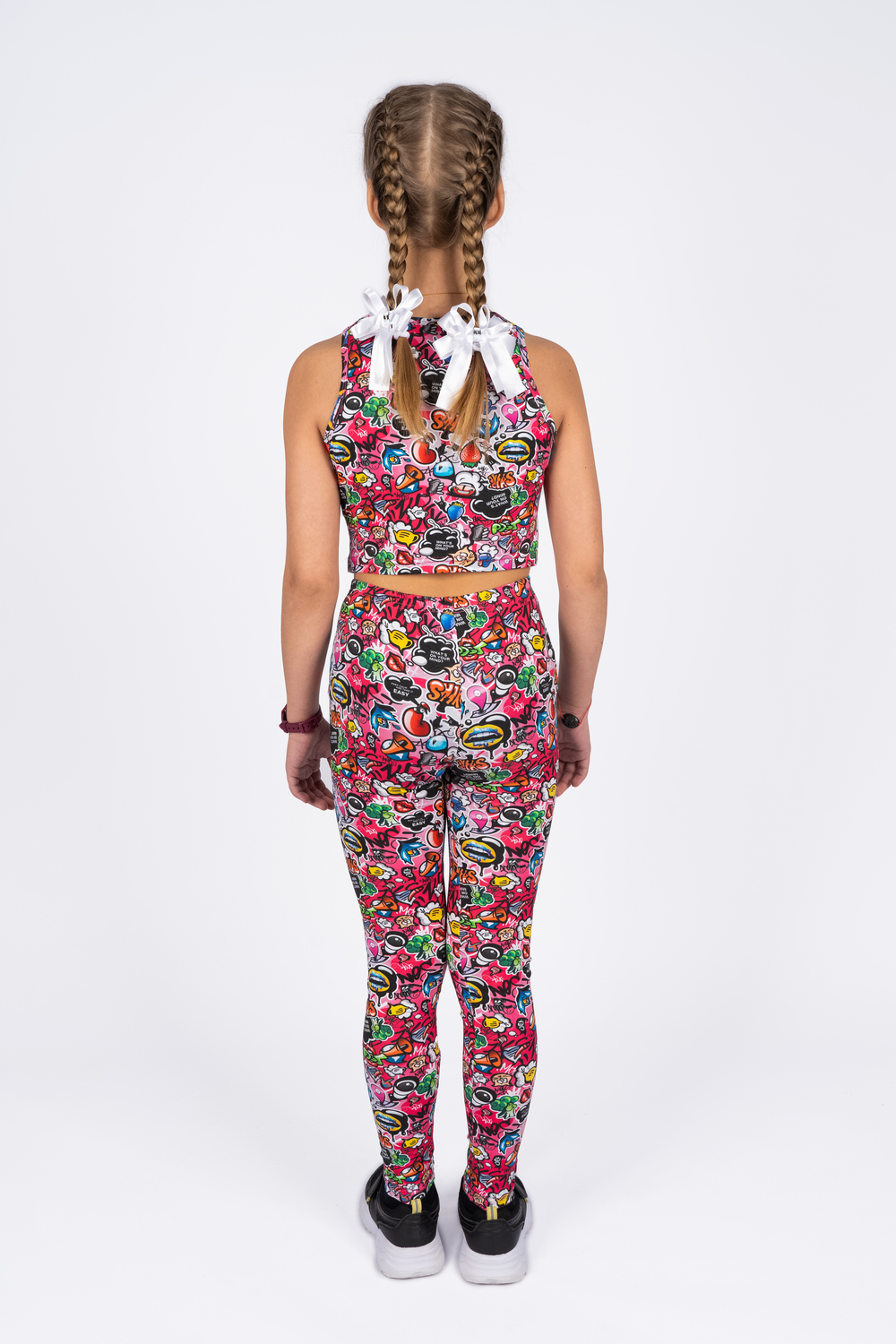 Красочные лосины для девочек из высококачественного хлопкового полотна. Яркие принты отлично подойдут для создания стильных повседневных образов маленьких модниц: на прогулку, в секцию, для дома, танцев и активных игр. Выполнены из натурального высококачественного хлопка с добавлением эластана, который придает дополнительный комфорт при носке и гарантирует сохранение формы изделия даже после многочисленных стирок. Пояс цельнокроеный с эластичной тесьмой, который не сдавливает живот и не мешает движению. Цвет: малиновое граффити; Материал: кулирка с лайкрой;кулирка с лайкрой; Состав: 92% хлопок, 8% эластан.