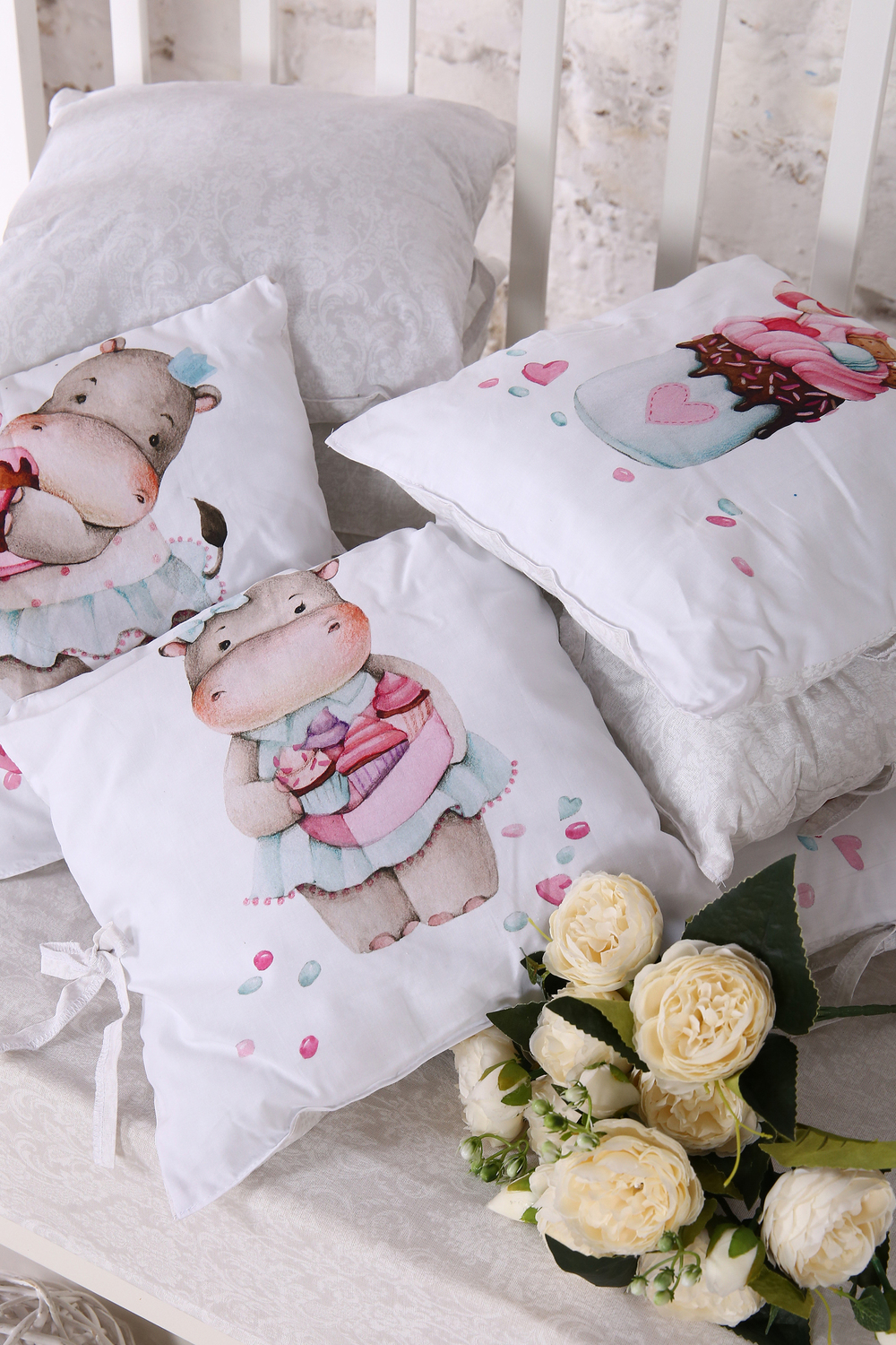 Бортик из 12 подушечек 35х35 на молнии с принтом арт. БРК-12П