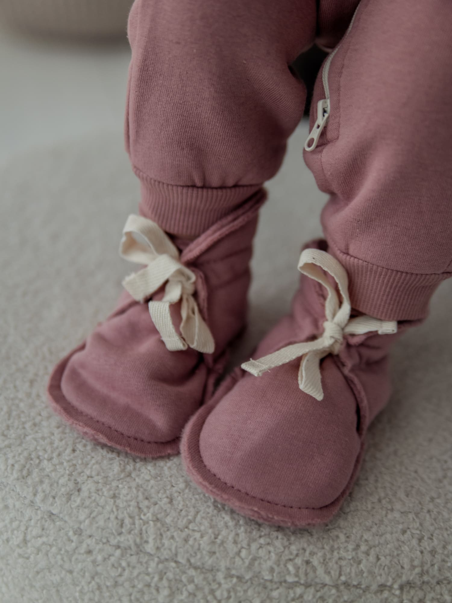 Пинетки удобно надевать поверх носочков для прогулок в коляске или использовать дома в качестве текстильной обуви.