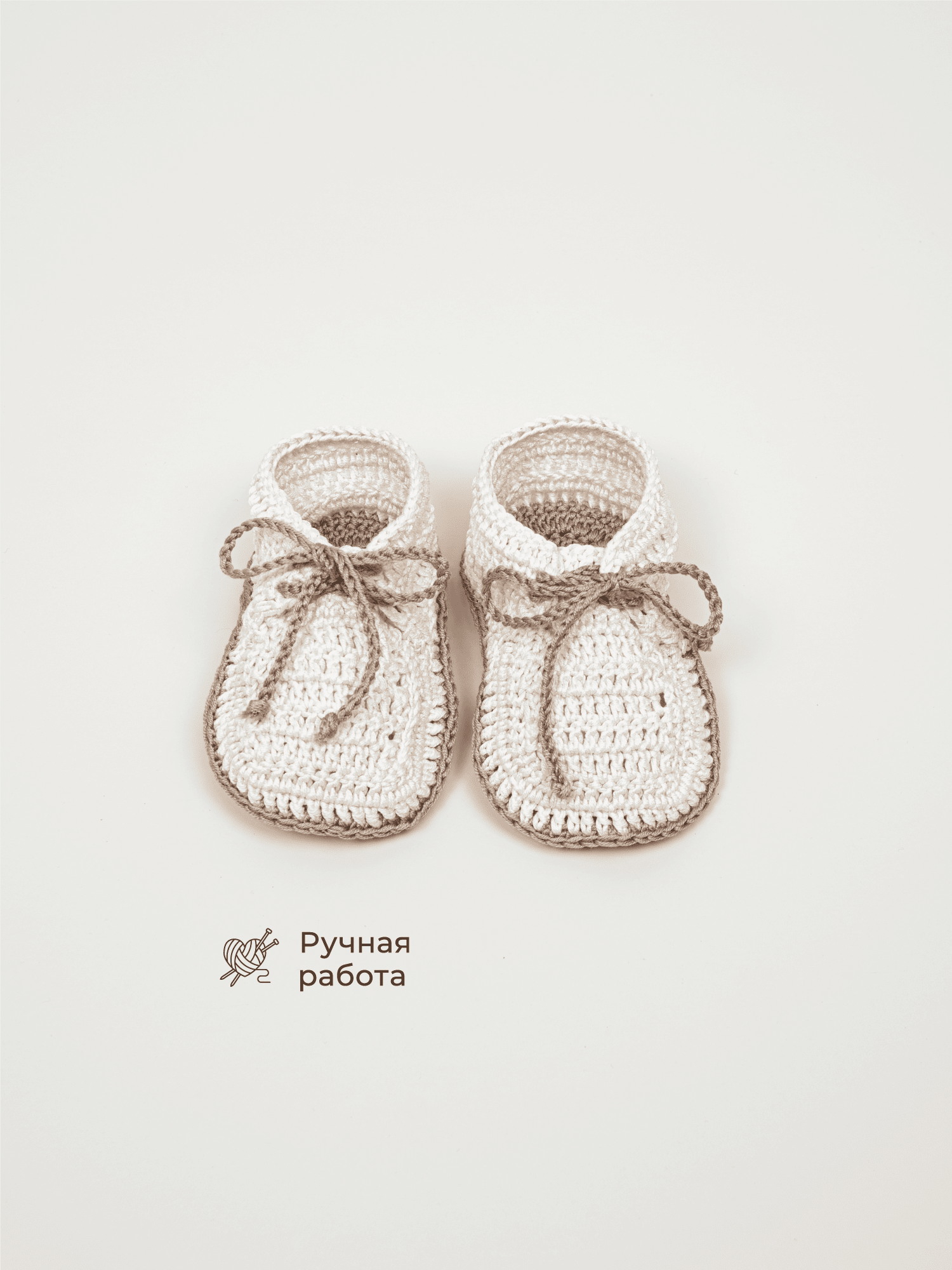 Вязаные пинетки для малышей с милой пуговкой в форме сердечка.