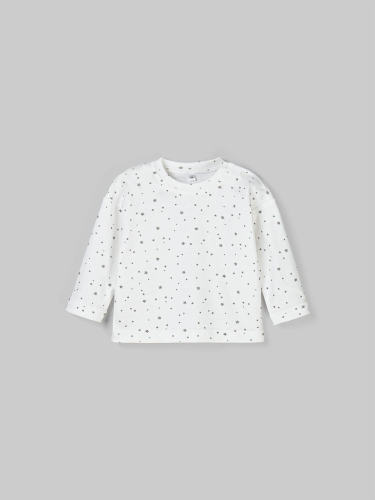 Фигурный вырез горловины и кнопки в плече для удобства переодевания.